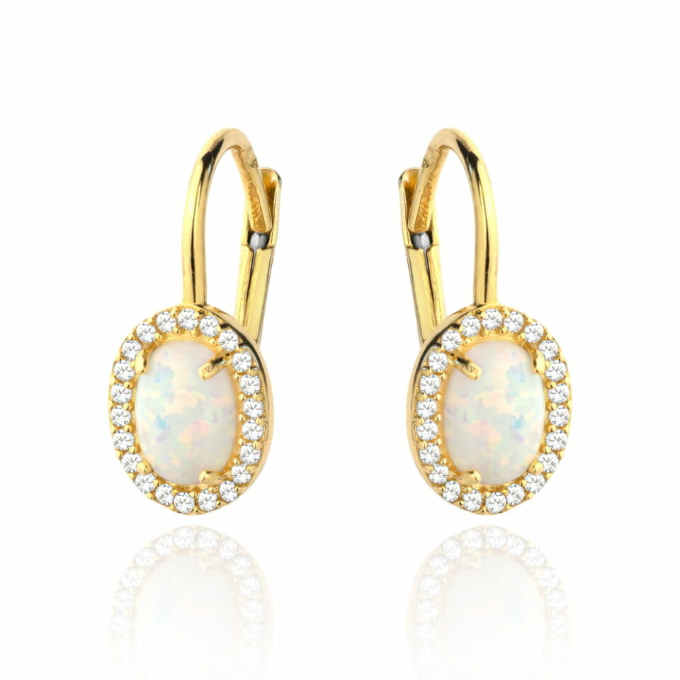 Kolczyk złoty owalny z opalem otoczony cyrkoniami to elegancki dodatek, który podkreśli wyjątkowość każdej stylizacji. Lśniące cyrkonie i subtelny opal tworzą niepowtarzalną kombinację, idealną na wieczorne wyjścia i specjalne okazje.