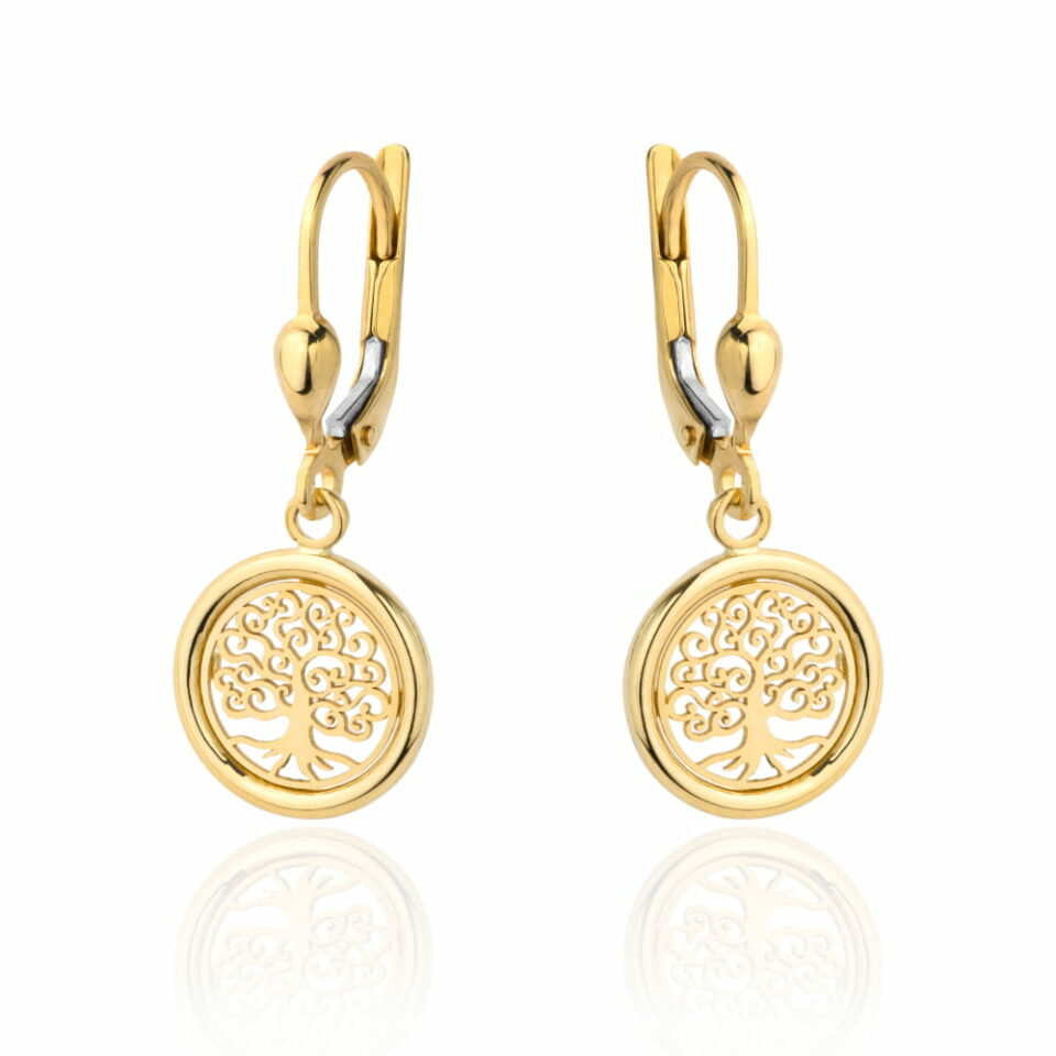 Kolczyki „drzewko szczęścia” w złotym kółku to subtelny symbol optymizmu i elegancji, idealny na każdą okazję. Wykonane z wysokiej jakości metalu i delikatnie zdobione złotym wykończeniem, podkreślą Twój styl i przyciągną spojrzenia.