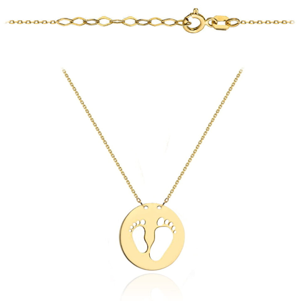 Elegancki naszyjnik Celebrytka w pełnym kółku, idealny dla kobiet ceniących subtelność i klasyczny design; naszyjnik stópki podkreśli Twoją stylizację, dodając szyku i wyjątkowego blasku.