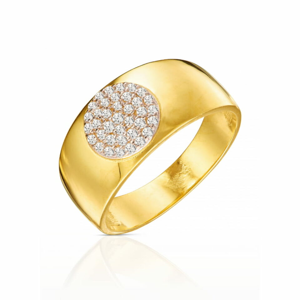 Delikatny pierścionek z eleganckim kółkiem, wyłożonym subtelnie wysadzanymi cyrkoniami, to idealny wybór dla kobiet ceniących klasykę i blask. Dodaj ten ponadczasowy akcent do swojej kolekcji biżuterii i pozwól, aby każdy dzień promieniał wyjątkowym stylem.