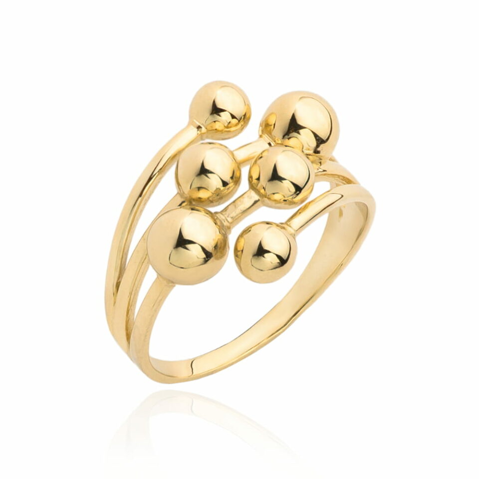 Elegancki pierścionek z delikatnymi złotymi kulkami i wyrazistym prostokątnym białym kamieniem, który podkreśla subtelność i nowoczesny styl. Idealny wybór dla kobiet ceniących klasykę w połączeniu z unikalnym designem, który zachwyci na każdej okazji.