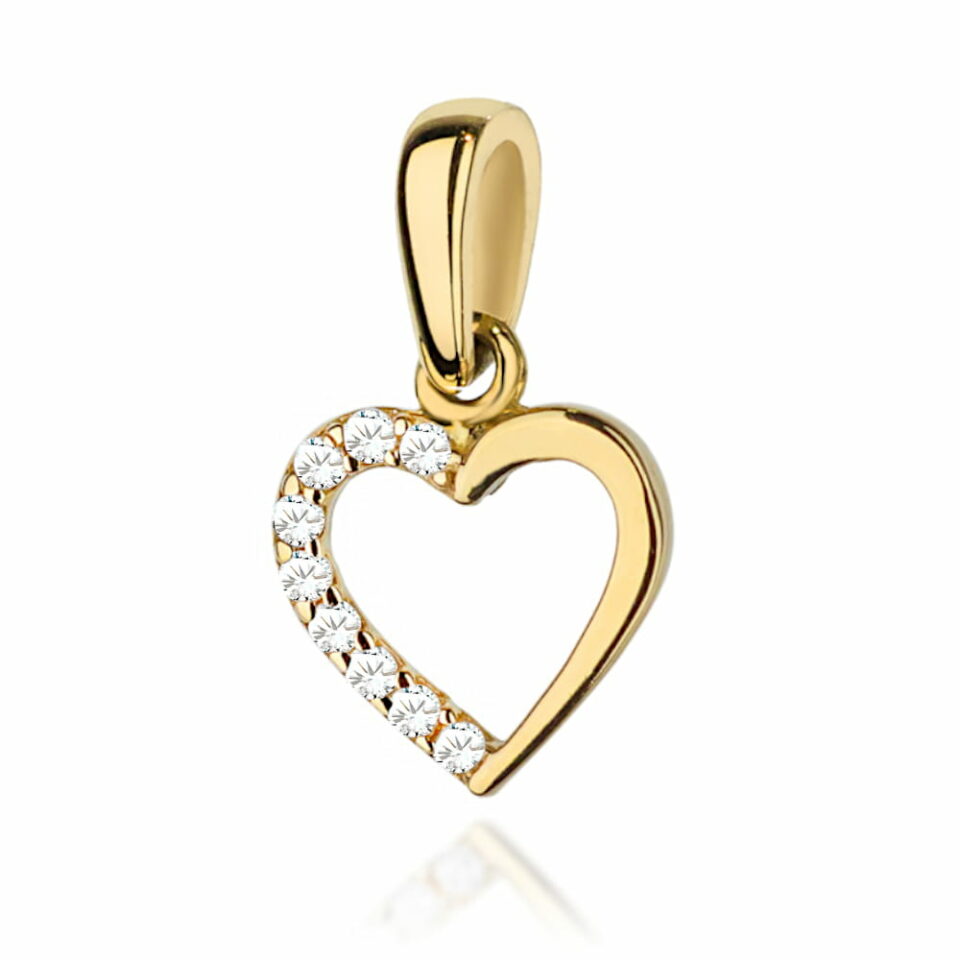 Zawieszka w kształcie dużego serca, wysadzana połową cyrkoniami, to wyrafinowany detal idealny na każdą okazję. Subtelne światło odbijane przez kryształy podkreśla elegancję i romantyczny charakter biżuterii, zachęcając do natychmiastowego zakupu.