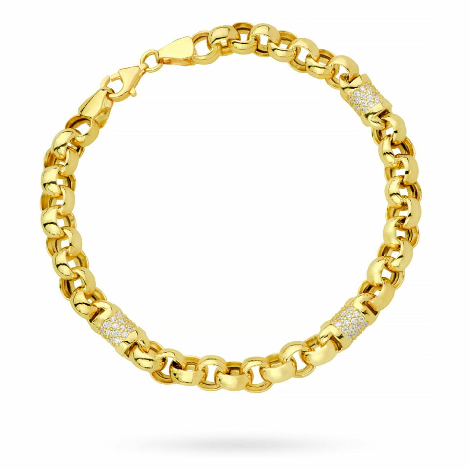 Elegancka bransoletka złota w stylu splot rolo, wykończona subtelnym wysadzeniem kamieni, stanowi idealne połączenie klasy i nowoczesności. Jej delikatny blask oraz wytrzymała konstrukcja sprawiają, że będzie doskonałym dodatkiem zarówno na co dzień, jak i na wyjątkowe okazje.