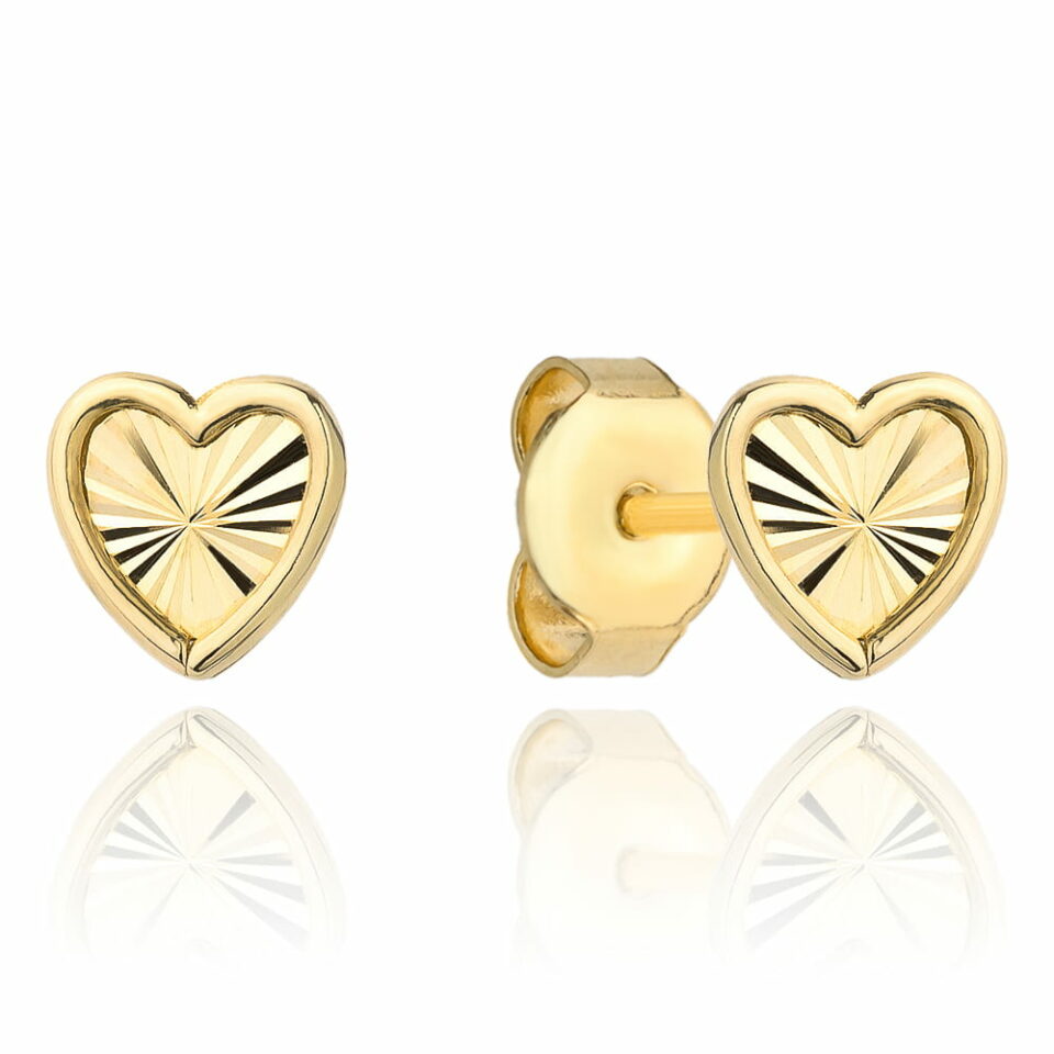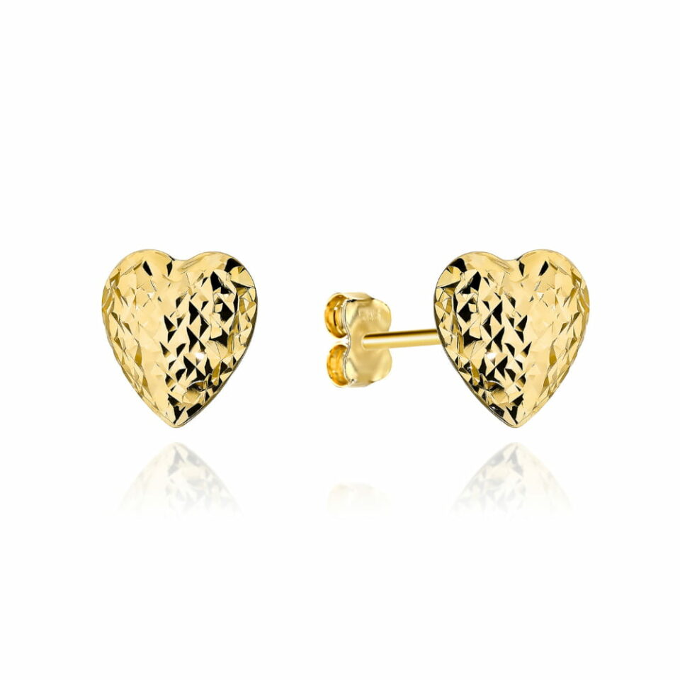 Kolczyki z delikatnymi serduszkami w złotym wykończeniu, ozdobione subtelnymi diamentami, to idealny wybór dla kobiet ceniących elegancję i lekkość. Dzięki niezwykle lekkiej konstrukcji można je nosić przez cały dzień, podkreślając naturalne piękno i styl każdej stylizacji.