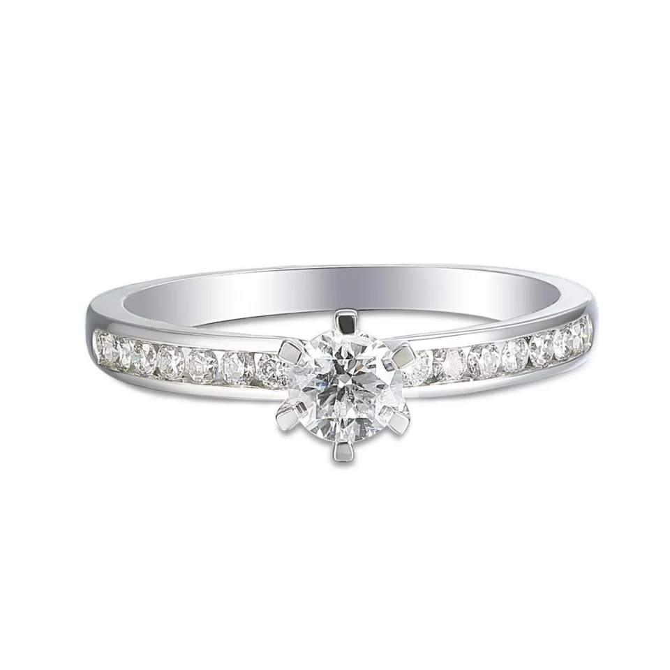 Pierścionek z diamentem z białego złota to kwintesencja elegancji i luksusu. Wykonany z najwyższej jakości białego złota, zachwyca blaskiem naturalnego diamentu i ponadczasowym stylem. Idealny na zaręczyny, rocznicę lub wyjątkowy prezent dla kobiety, która ceni klasę i subtelne piękno.