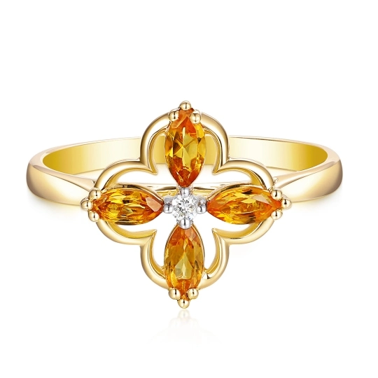 Pierścionek z cytrynem i diamentami to elegancka biżuteria z naturalnymi kamieniami, która zachwyca ciepłym, złocistym blaskiem. Cytryn w połączeniu z diamentami tworzy ponadczasowy design, idealny na prezent, zaręczyny lub wyjątkową okazję.