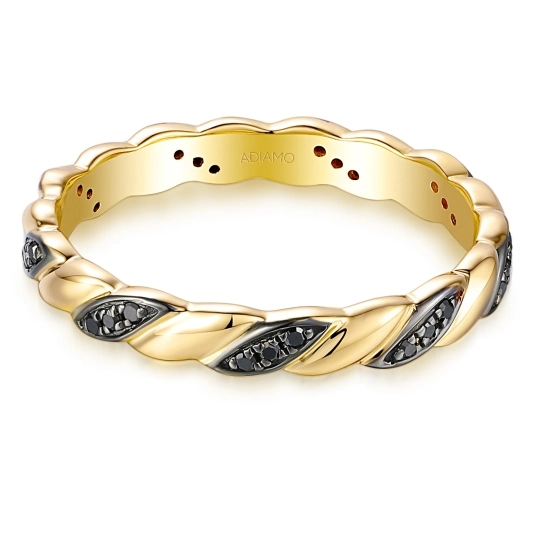 Delikatny złoty pierścionek z czarnymi diamentami to elegancka i nowoczesna biżuteria dla kobiet ceniących subtelny luksus. Wykonany z wysokiej jakości złota, ozdobiony starannie osadzonymi czarnymi diamentami, zachwyca minimalistyczną formą i wyrafinowanym charakterem. Idealny na prezent, rocznicę lub jako stylowy dodatek do codziennych i wieczorowych stylizacji. Ponadczasowy design i precyzyjne wykończenie gwarantują trwałość oraz wyjątkowy blask na lata.