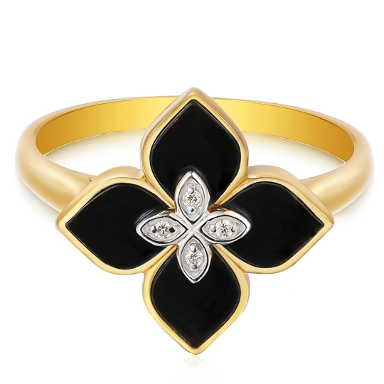 Złoty pierścionek z czarnym agatem i diamentami to elegancka biżuteria łącząca klasyczne piękno z nowoczesnym charakterem. Głęboka czerń naturalnego agatu w efektowny sposób kontrastuje z blaskiem diamentów, tworząc wyjątkową kompozycję pełną szyku i wyrafinowania. Wykonany z wysokiej jakości złota, pierścionek doskonale sprawdzi się jako luksusowy prezent lub stylowy dodatek na wyjątkowe okazje.