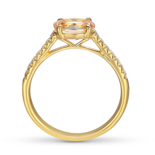 Zaręczynowy pierścionek z morganitem i diamentami wykonany ze złota. Elegancka biżuteria z naturalnym morganitem, idealna na wyjątkowe oświadczyny.