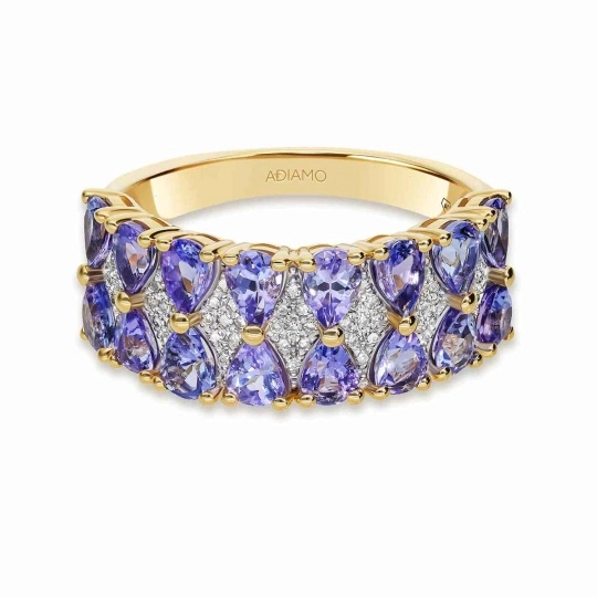 Zachwycający obrączkowy złoty pierścionek z tanzanitami i diamentami to połączenie klasycznej elegancji i luksusowego blasku. Wykonany z wysokiej jakości złota, ozdobiony intensywnie fioletowo-niebieskimi tanzanitami oraz lśniącymi diamentami, tworzy wyjątkową kompozycję idealną na zaręczyny, rocznicę lub ekskluzywny prezent.
