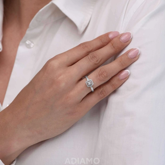 Wyjątkowy pierścionek zaręczynowy z białego złota z diamentami to idealne połączenie nowoczesnej elegancji i klasycznego blasku. Wykonany z wysokiej jakości białego złota próby 585 (14K), ozdobiony naturalnymi diamentami, zachwyca subtelnym połyskiem i perfekcyjnym wykończeniem.
