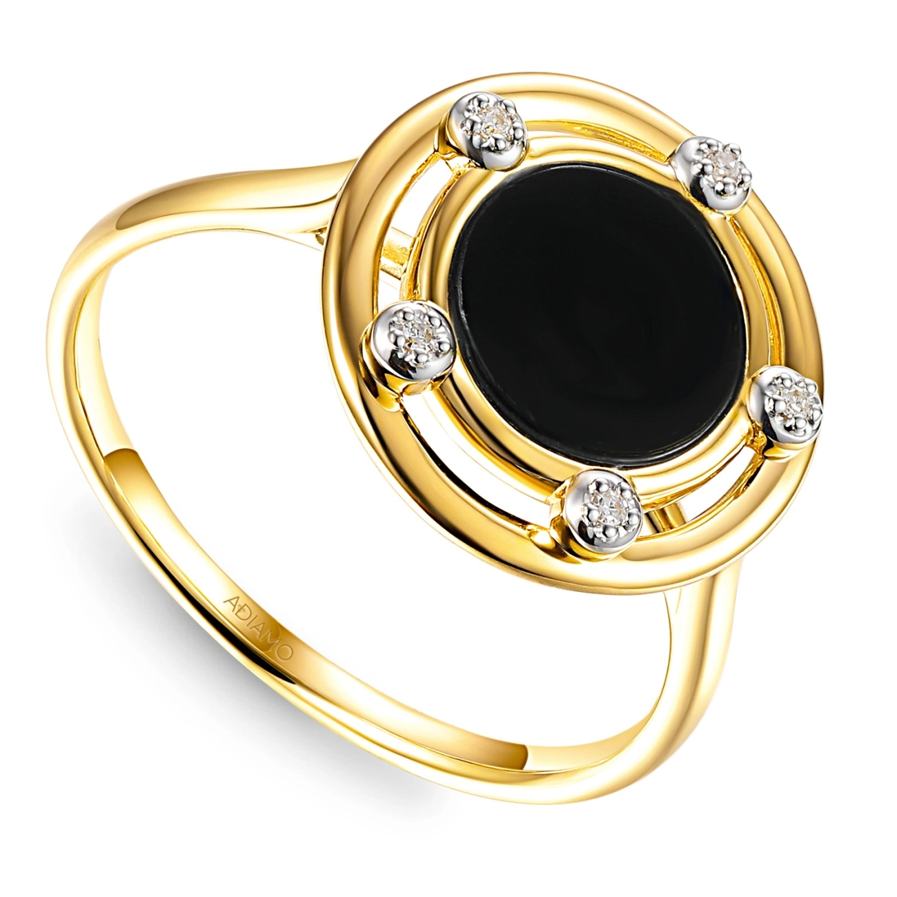 Pierścionek z czarnym agatem i diamentami