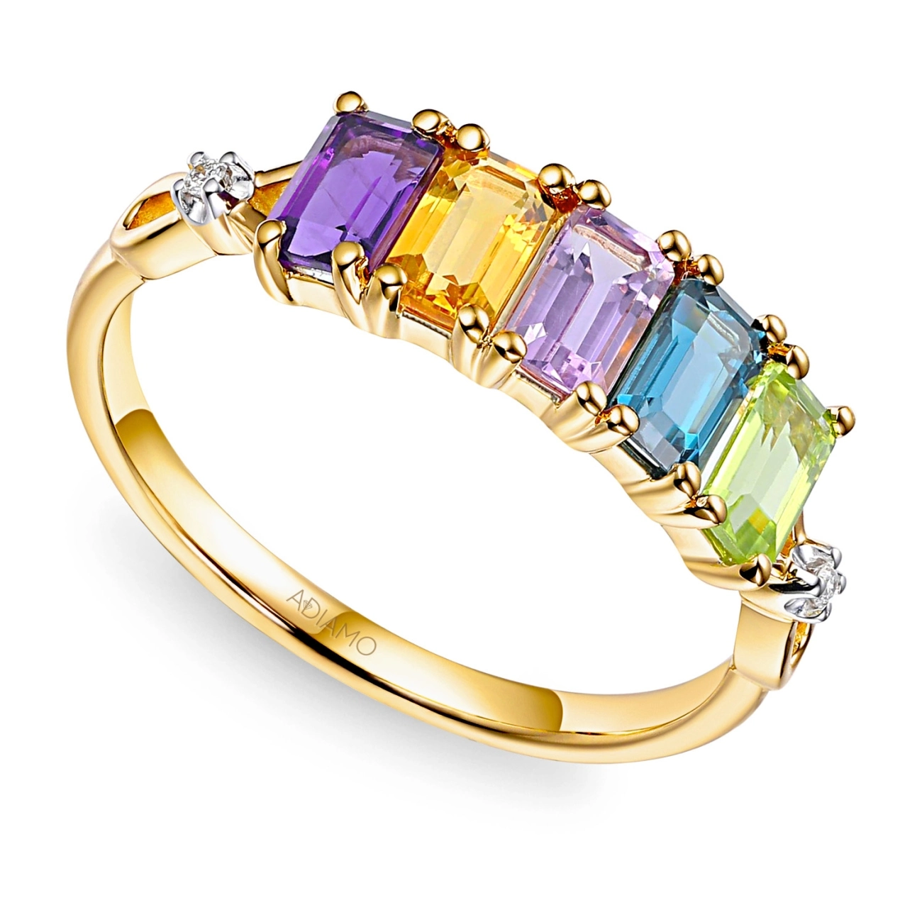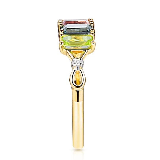 Pierścionek z kolorowymi kamieniami i diamentami