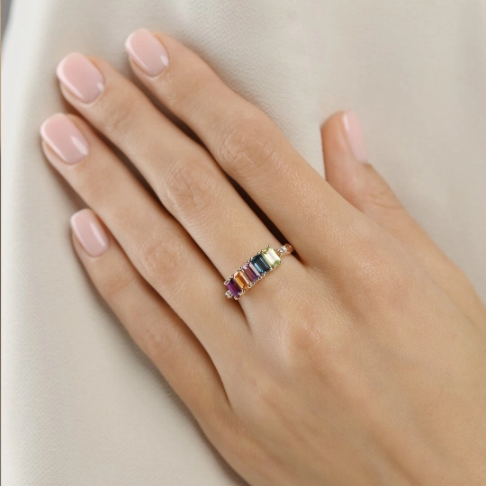 Pierścionek z kolorowymi kamieniami i diamentami to wyjątkowa biżuteria, która zachwyca blaskiem i elegancją. Połączenie szlachetnych, wielobarwnych kamieni z lśniącymi diamentami tworzy efektowną kompozycję idealną na zaręczyny, rocznicę lub wyjątkowy prezent. Starannie wykonany z wysokiej jakości materiałów, podkreśla indywidualny styl i dodaje luksusowego charakteru każdej stylizacji. Wybierz pierścionek z kolorowymi kamieniami i diamentami, aby olśniewać przy każdej okazji.