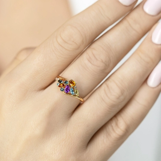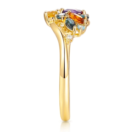 Pierścionek z kolorowymi kamieniami i diamentami