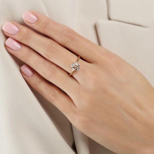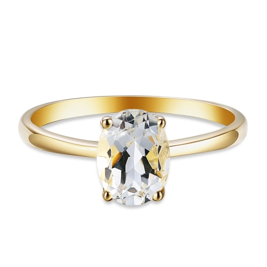 Złoty pierścionek z owalnym topazem to połączenie klasy i delikatnego blasku. Wykonany z najwyższej jakości złota, zachwyca elegancką formą i wyjątkowym kamieniem o niepowtarzalnym połysku. Doskonały wybór na prezent, zaręczyny lub jako stylowy dodatek do codziennych stylizacji.