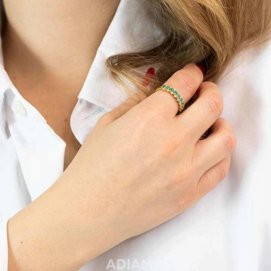 Złoty pierścionek ze szmaragdami i diamentami to kwintesencja luksusu i naturalnego piękna. Wykonany z najwyższej jakości złota, zachwyca intensywną zielenią szmaragdów, które symbolizują harmonię, miłość i odrodzenie. Ich głęboki kolor doskonale współgra z blaskiem diamentów, tworząc wyjątkową kompozycję pełną elegancji i subtelnego splendoru. Doskonale sprawdzi się jako prezent na rocznicę, zaręczyny lub wyjątkową okazję.