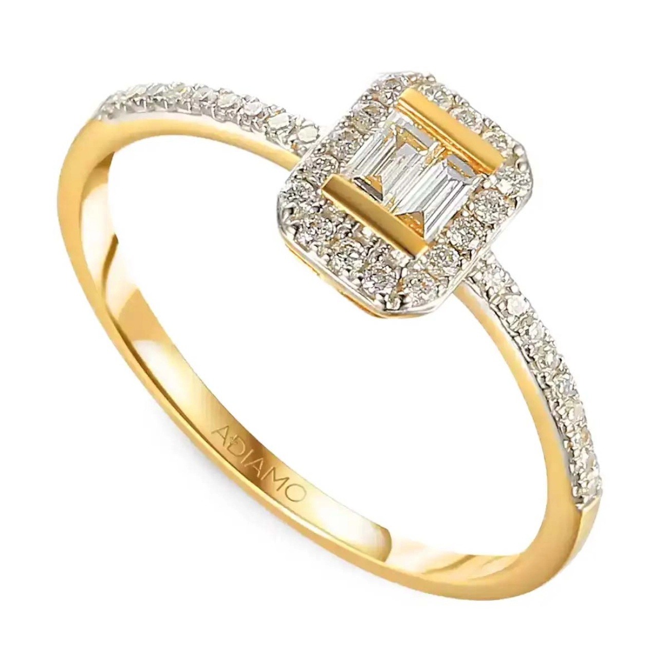 Złoty pierścionek z diamentami bagietowymi