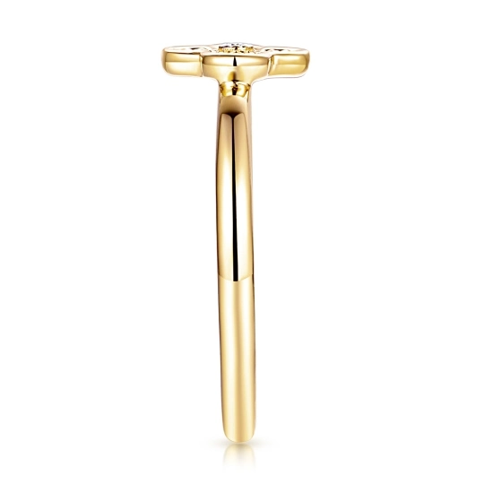 Delikatny złoty pierścionek koniczyna z diamentem to subtelna biżuteria o wyjątkowej symbolice szczęścia i elegancji. Wykonany z wysokiej jakości złota, ozdobiony lśniącym diamentem, zachwyca minimalistycznym designem i ponadczasowym stylem. Idealny na prezent lub jako codzienny, kobiecy akcent podkreślający naturalne piękno i klasę.