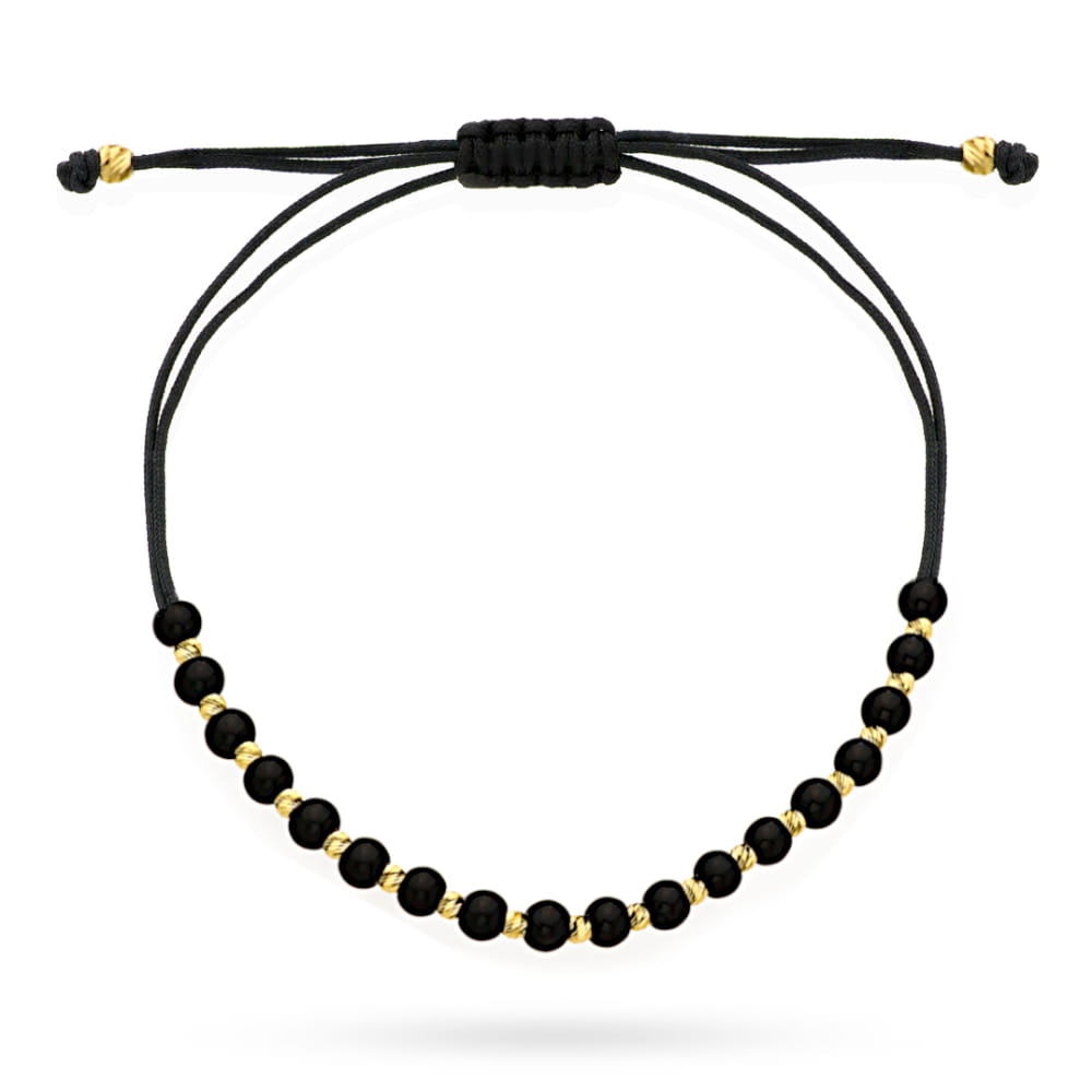 Elegancka bransoletka z diamentowymi i czarnymi kuleczkami, w delikatnym połączeniu na czarnym sznurku, podkreśla subtelność i wyrafinowanie każdego stylu. Idealna na wieczorne wyjście lub codzienny urok, przyciąga spojrzenia i dodaje blasku każdej dłoni.