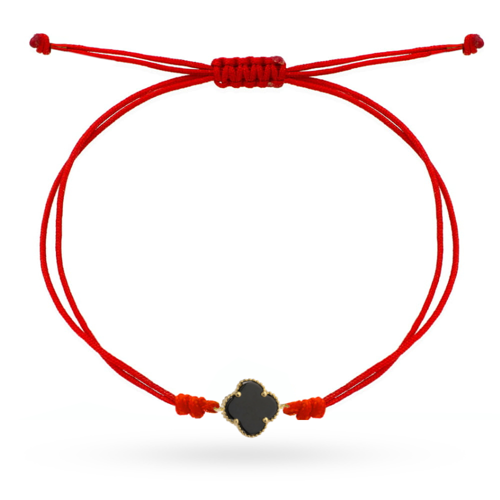 Elegancka bransoletka złota z czarną koniczynką na czerwonym sznurku to połączenie klasyki i wyrafinowanego stylu, idealne na każdą okazję. Dodaj jej subtelny blask do swojej kolekcji biżuterii i podkreśl wyjątkowość swojego looku.