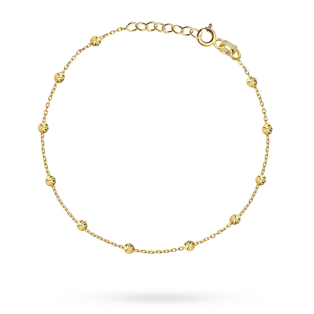 Delikatna bransoletka z złota, zdobiona subtelnie diamentowanymi kulkami, to połączenie elegancji i klasy. Idealny dodatek na każdą okazję, który podkreśli Twój wyjątkowy styl.