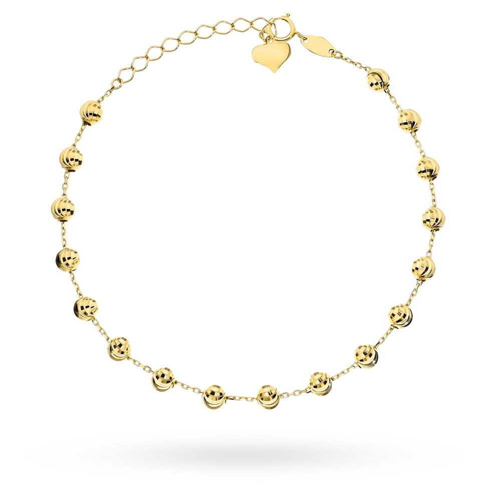 Delikatna bransoletka z złota w stylu party, ozdobiona diamentowanymi kulkami, dodaje elegancji każdej stylizacji. Idealny wybór na wieczorne wyjścia i specjalne okazje, podkreślający wyjątkowy charakter Twojego wyglądu.