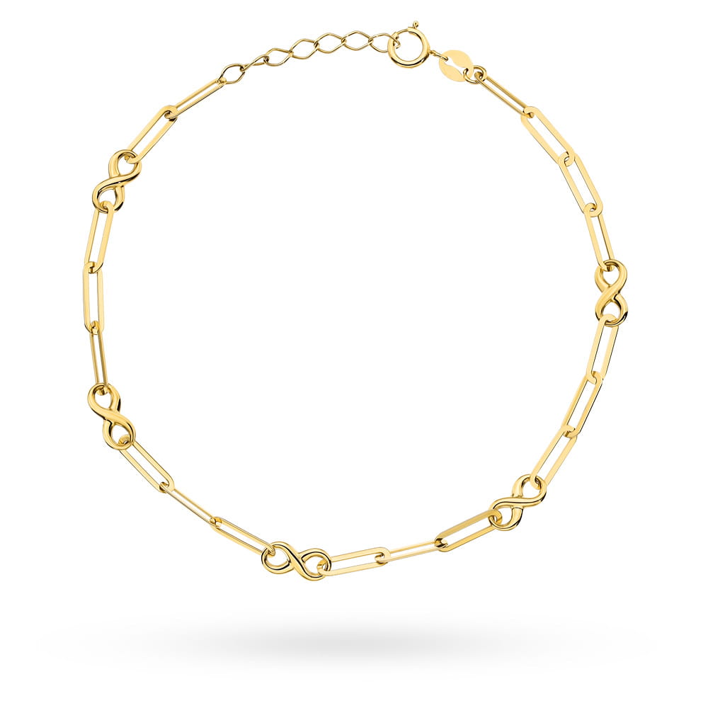 Zanurz się w niekończącym się blasku tej złotej bransoletki, której długie ogniwa splatają się w elegancki taniec światła. Każdy znak nieskończoności, delikatnie wyprofilowany w złocie, symbolizuje wieczną miłość i niezłomny charakter Twojej osobowości. Ta biżuteria to nie tylko ozdoba, lecz także wyraz najpiękniejszych aspiracji i niezwykłej finezji, którymi możesz się otaczać każdego dnia. Odważ się wyrazić siebie w stylu, który pozostaje wiecznie nowoczesny i niezwykle luksusowy