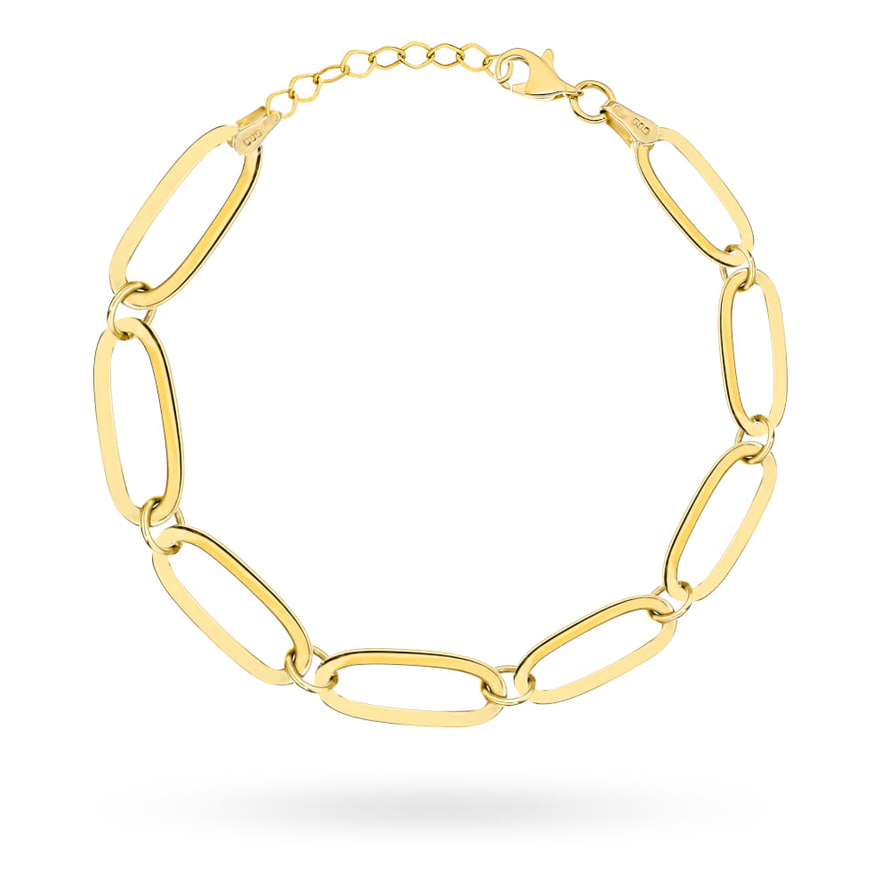 Elegancka bransoletka z dużymi złotymi ogniwami przeplatającymi się z delikatnymi małymi elementami, tworząca niezwykły kontrast i przyciągający wzrok design. Idealna zarówno na formalne okazje, jak i do codziennego noszenia, podkreśla styl i wyrafinowanie każdej kobiety.