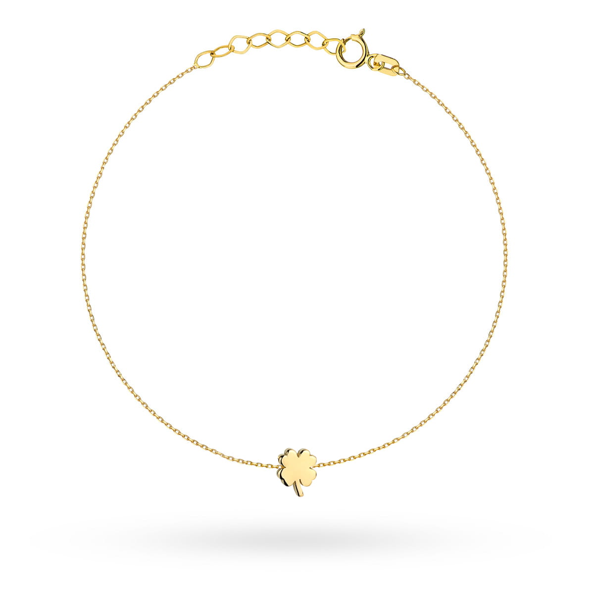 Delikatna bransoletka złota z małą koniczynką, symbolizująca szczęście i elegancję, idealna na codzienne wyjścia oraz specjalne okazje. Jej subtelny design i wysokiej jakości wykończenie sprawiają, że stanowi ponadczasowy dodatek do każdej stylizacji.