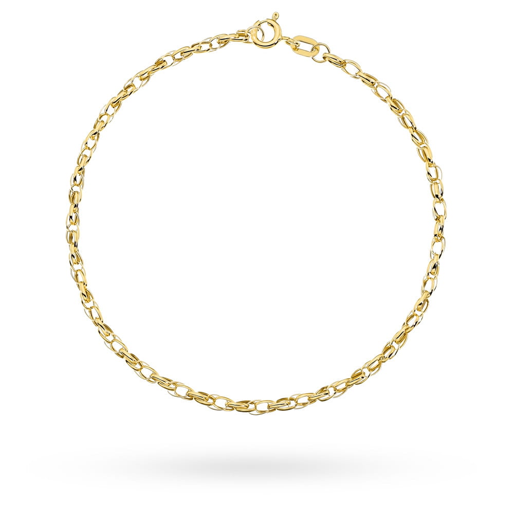 Zanurz się w subtelnej elegancji tej złotej bransoletki, która łączy klasyczne rolo z nowoczesnym podwójnym owalem, tworząc niepowtarzalny efekt wizualny. Jej delikatne połyskiwanie przyciąga spojrzenia, podkreślając każdy ruch i dodając blasku każdej chwili. Idealna zarówno na codzienne wyjścia, jak i wyjątkowe okazje, emanując luksusem i ponadczasowym pięknem. Pozwól sobie na odrobinę wyjątkowości – ta bransoletka to połączenie tradycji i nowoczesności w jednym, niezwykłym kompozycie.