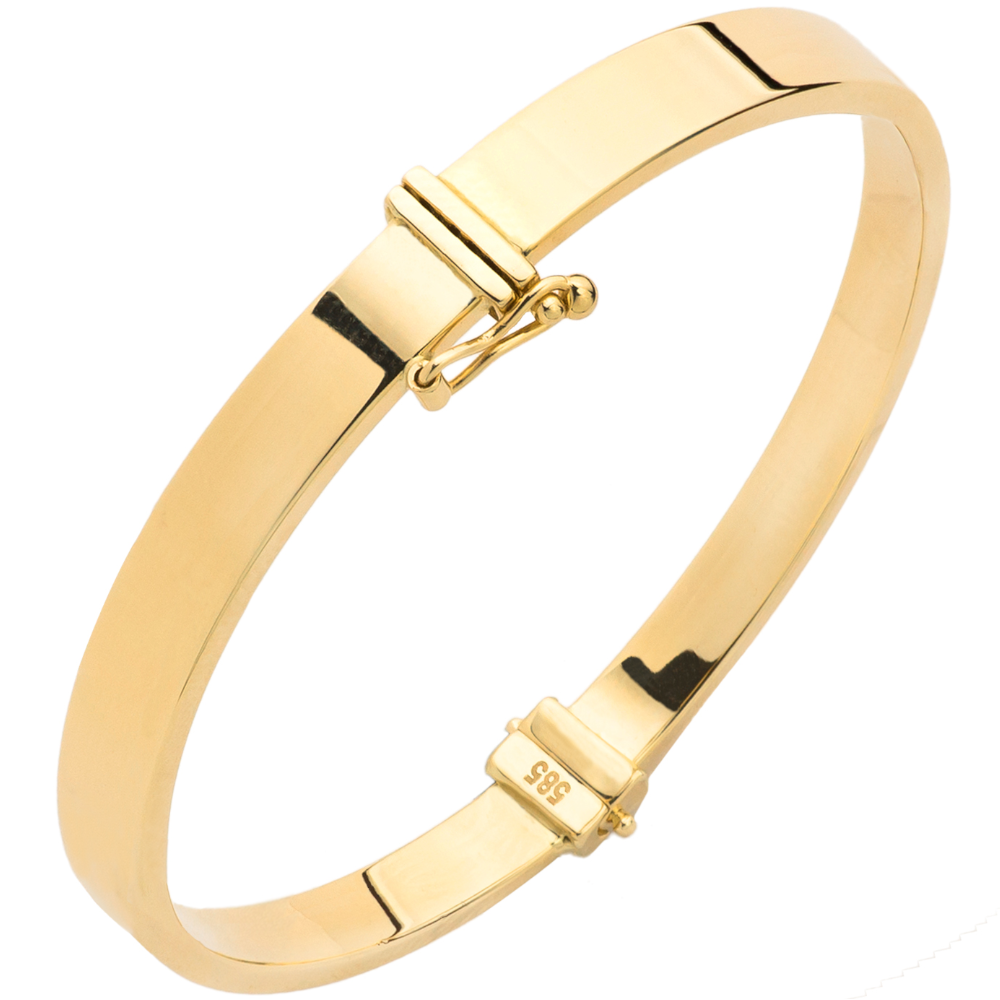 Delikatna, sztywna bransoletka wykonana z wysokiej jakości złota, która podkreśla elegancję każdej stylizacji. Jej szeroka konstrukcja zapewnia komfort noszenia i subtelny, luksusowy akcent.