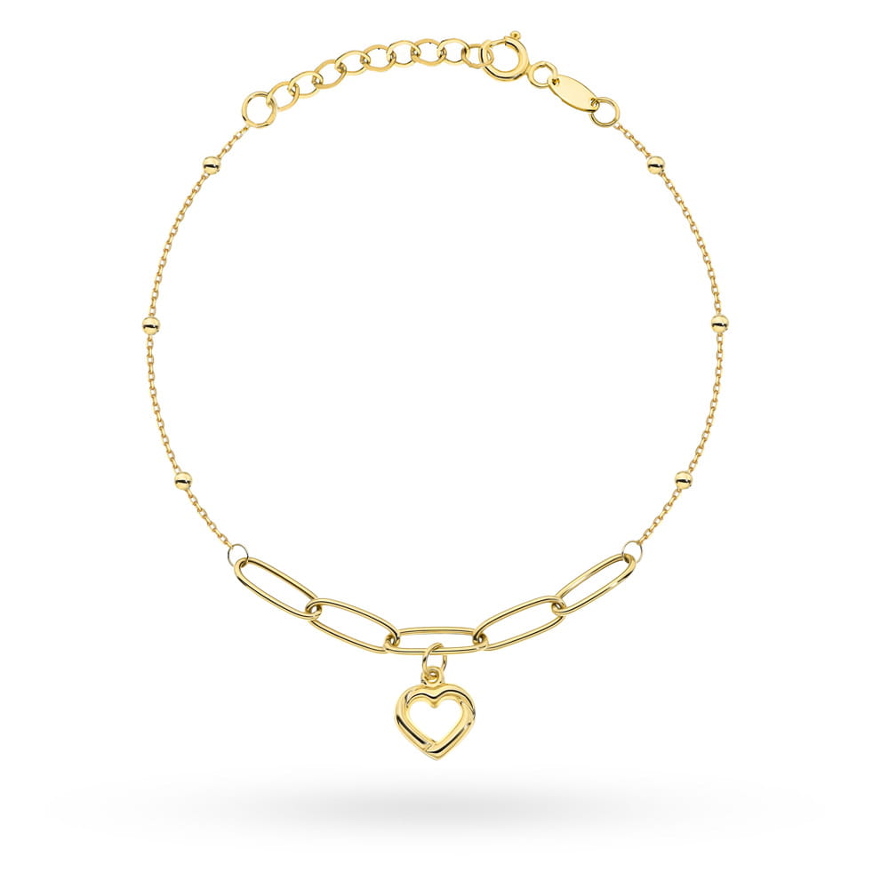 Bransoletka złota z długimi ogniwami, sercem i gładkimi kulkami
