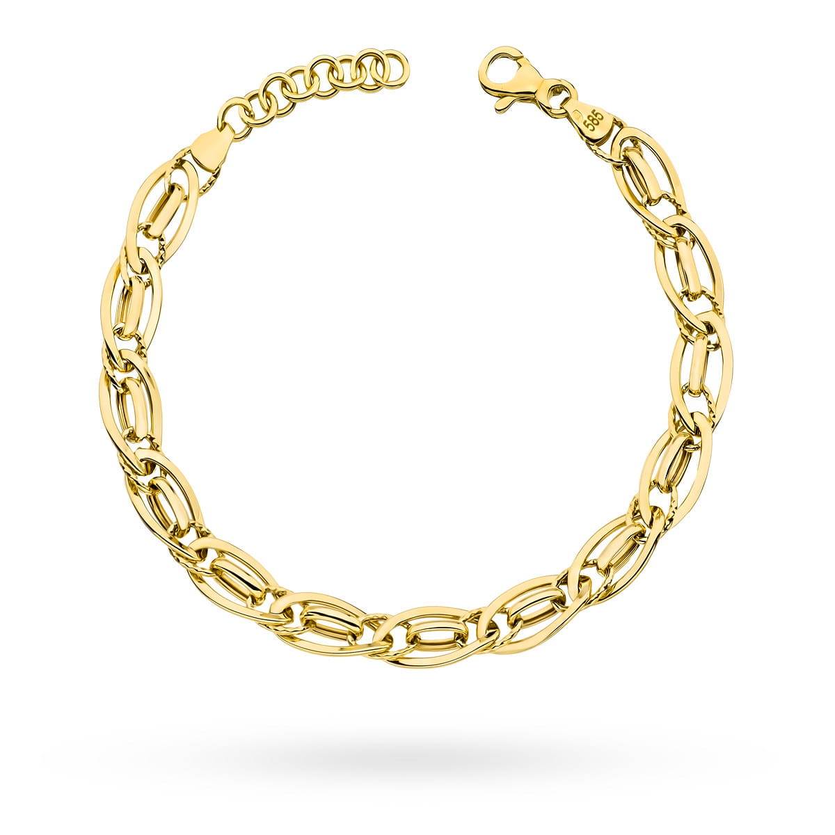 Złota bransoletka z kolekcji GRANDE, ozdobiona delikatnym diamentowaniem, to połączenie klasyki i nowoczesnego blasku, które podkreśli elegancję każdej stylizacji. Idealna na specjalne okazje i codzienne noszenie, zachwyca subtelnością detali oraz trwałością wysokiej jakości metalu.