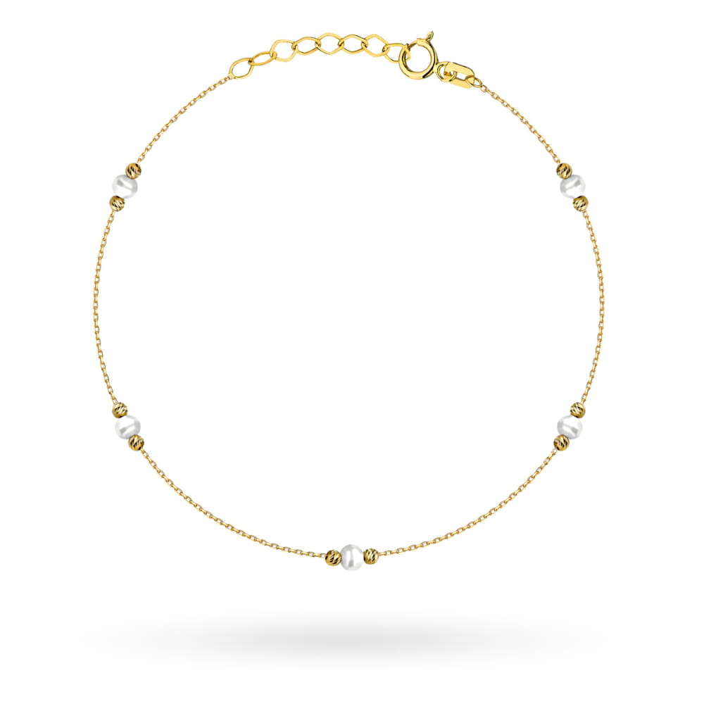 Delikatna bransoletka z 18-karatowego złota, ozdobiona naturalnymi perłami i subtelnie diamentowanymi kulkami, to połączenie elegancji z wyrafinowaną finezją. Idealny dodatek na specjalne okazje, który podkreśli Twoją wyjątkowość i sprawi, że każdy spojrzenie będzie pełne blasku.