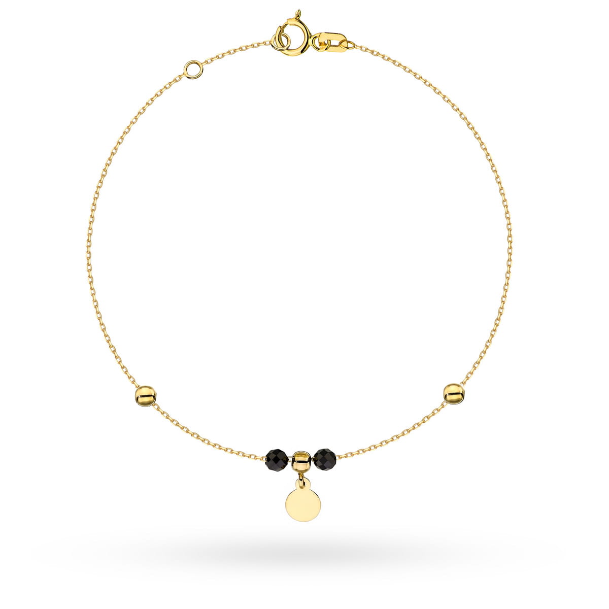 Zachwycająca bransoletka z żółtego złota, której elegancka zawieszka w kształcie pełnego koła rozświetla każdy ruch. Subtelne, złote kulki w kontraście do czarnych akcentów dodają wyrafinowanego charakteru, tworząc niepowtarzalny balans między blaskiem a tajemniczością. Idealna na wieczorne wyjścia, ale też doskonała jako codzienny akcent luksusu, podkreślając naturalne piękno noszącej ją osoby. Ta biżuteria to nie tylko ozdoba, lecz także wyraz indywidualnej elegancji i niezapomnianego stylu