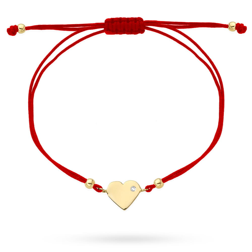 Odkryj niepowtarzalny urok tej złotej bransoletki, która w subtelnych falach serca emanuje ciepłem i elegancją. Delikatne cyrkonie, rozświetlające każdy ruch, kontrastują z głębokim czerwonym sznurkiem, nadając całości nieodparcie romantyczny charakter. Idealna zarówno na codzienne wyjścia, jak i specjalne okazje – ta biżuteria przyciąga spojrzenia i podkreśla Twoją wyjątkowość.