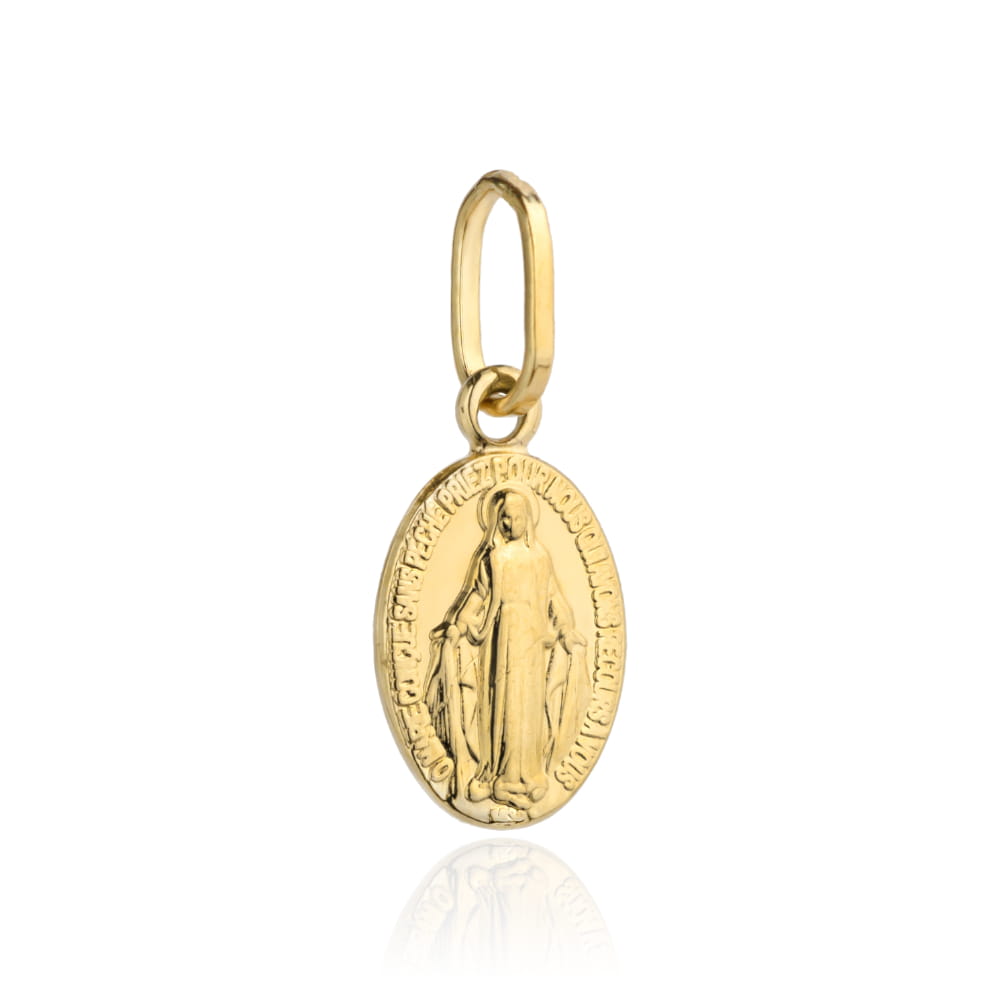 Zanurz się w delikatnym blasku Cudownego Medalika zawieszki, wykonanej z najwyższej jakości 585 złota. Jego kompaktowy kształt i subtelny design sprawiają, że staje się on nieodłącznym akcentem codziennej elegancji, podkreślając indywidualny styl każdej osoby. Każdy detal został starannie dopracowany, aby emanował ciepłem i luksusem, zachęcając do noszenia go z dumą i miłością. To małe dzieło sztuki, które w prosty sposób przekształca zwykły dzień w niezwykłe doświadczenie blasku i wyrafinowania.