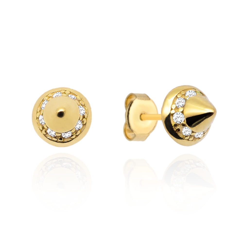 Wspaniałe kolczyki w stylu ćwieki, które zachwycają subtelnością i elegancją. Każdy element został wysadzany delikatnymi cyrkoniami, które mienią się niczym gwiazdy na nocnym niebie. Idealne zarówno na codzienne wyjścia, jak i na wyjątkowe okazje – podkreślą Twoją naturalną urodę i dodadzą blasku każdemu spojrzeniu. Pozwól sobie na odrobinę luksusu i poczuj, jak biżuteria staje się wyrazem Twojej osobowości. Niech te kolczyki staną się Twoim nowym ulubionym akcentem, który rozświetla każdy dzień