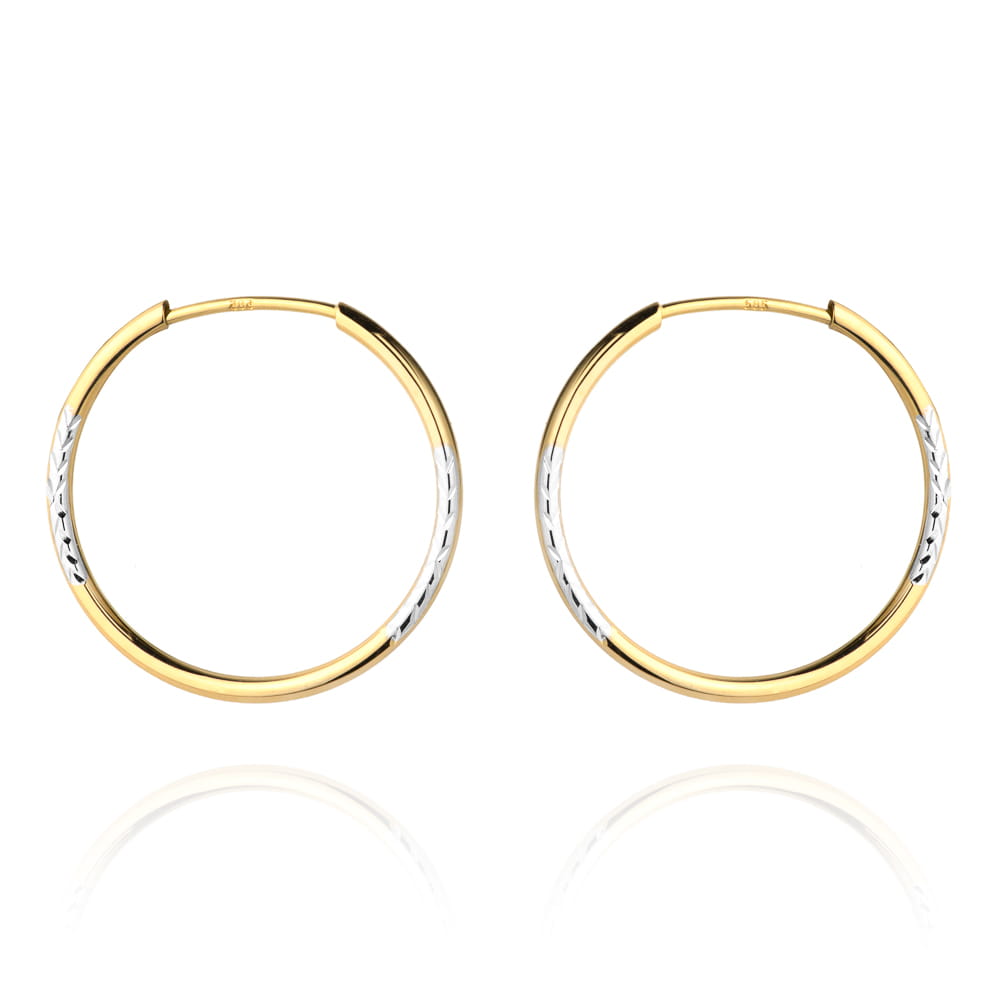 Kolczyki koła częściowo diamentowane w dwóch odcieniach złota to połączenie elegancji i nowoczesnego designu, które podkreśli Twój styl na każdej okazji. Delikatne diamenty oraz starannie dobrane kolory złota sprawiają, że te 2,4‑centymetrowe kolczyki są idealnym dodatkiem do biżuterii codziennej i specjalnych wydarzeń.