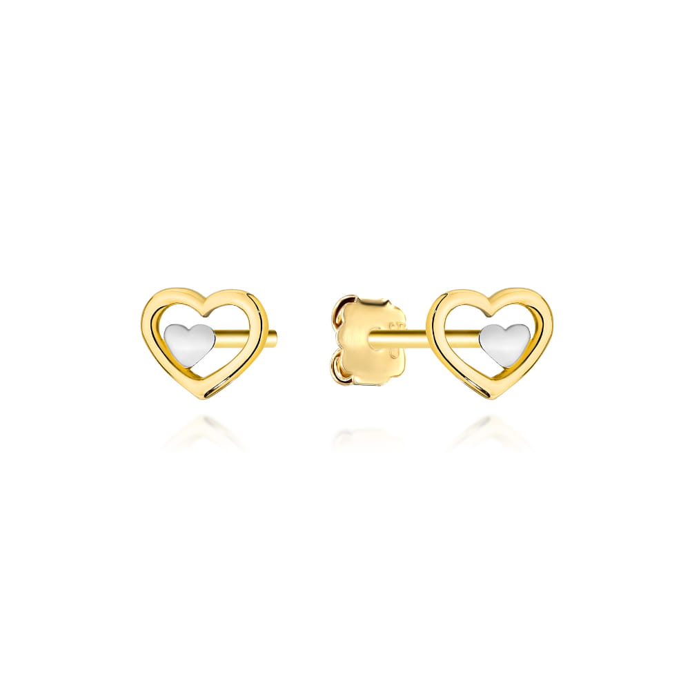 Eleganckie kolczyki w kształcie serca, wykonane z dwóch odcieni złota, podkreślą subtelność Twojego stylu i dodadzą blasku każdej okazji. Wybierz te wyrafinowane akcesoria, by podkreślić swoje serce i zachwycić wyjątkowym designem.