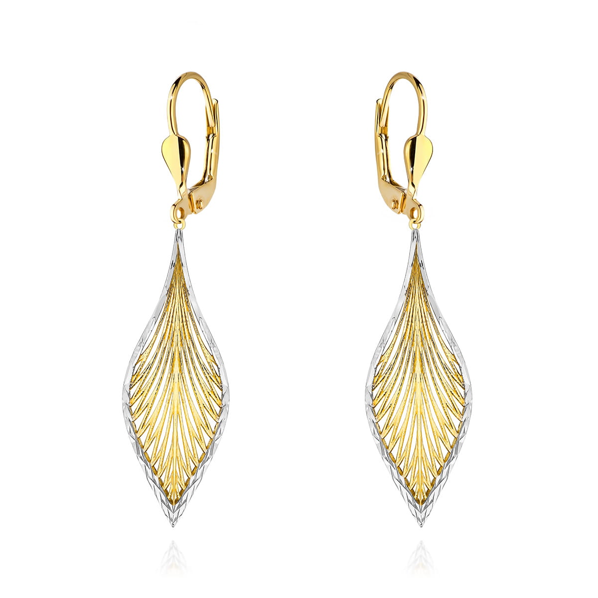 Eleganckie kolczyki z ażurową strukturą w formie liści, ozdobione diamentami i wykonane z dwóch odcieni złota, podkreślą Twój styl. Idealne na specjalne okazje i codzienne wyjścia, zapewniające blask oraz subtelny luksus.
