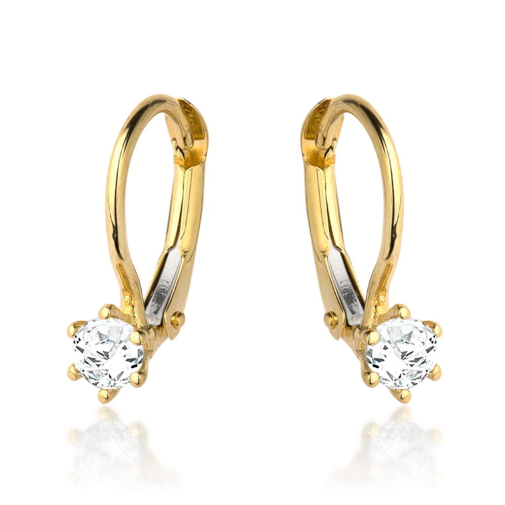 Kolczyki złote centralna biała cyrkonia na francuskim zapięciu