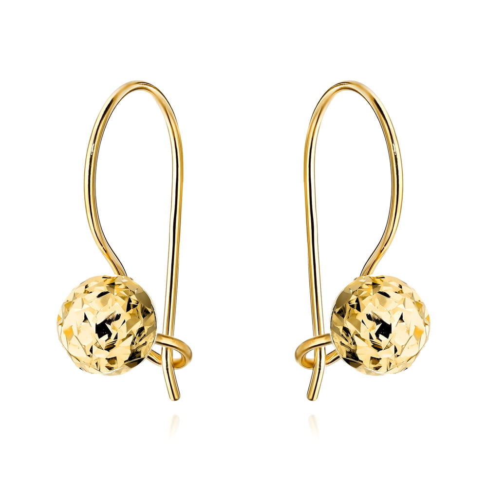 Złote kulki na biglu, delikatnie diamentowane, tworzą elegancki akcent, który podkreśli każdy urok Twojej stylizacji. Lekkość i blask tych kolczyków sprawią, że poczujesz się wyjątkowo w każdej sytuacji.