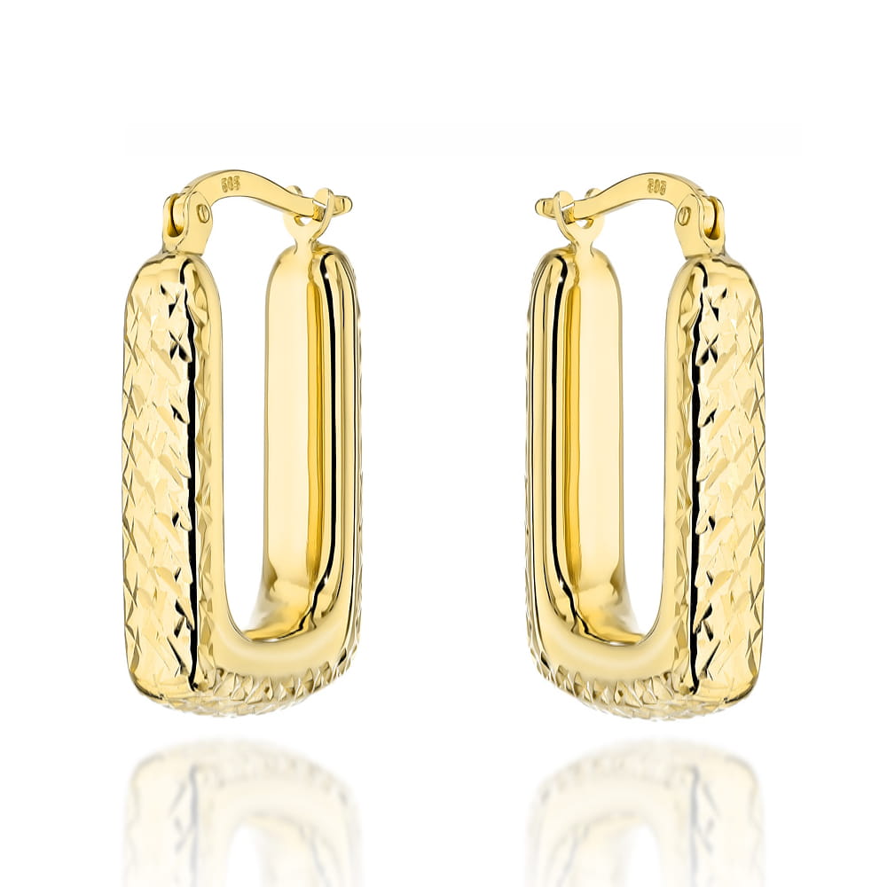 Kolczyki złote diamentowane prostokątne duże to wyrafinowany dodatek, który podkreśli elegancję każdej stylizacji. Ich złota struktura i delikatne diamenty przyciągają spojrzenia, zapewniając niepowtarzalny blask i luksusowy wystrój.