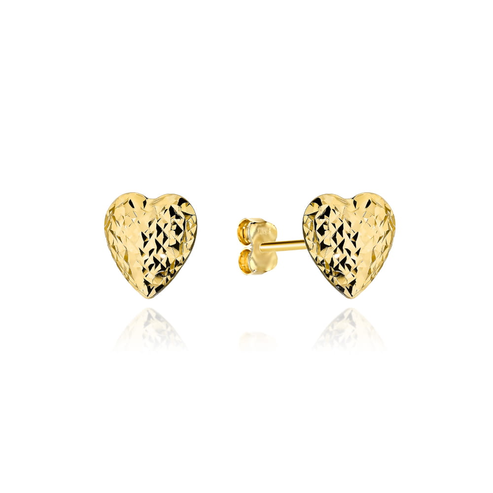 Kolczyki złote diamentowane serca puste super lekkie małe