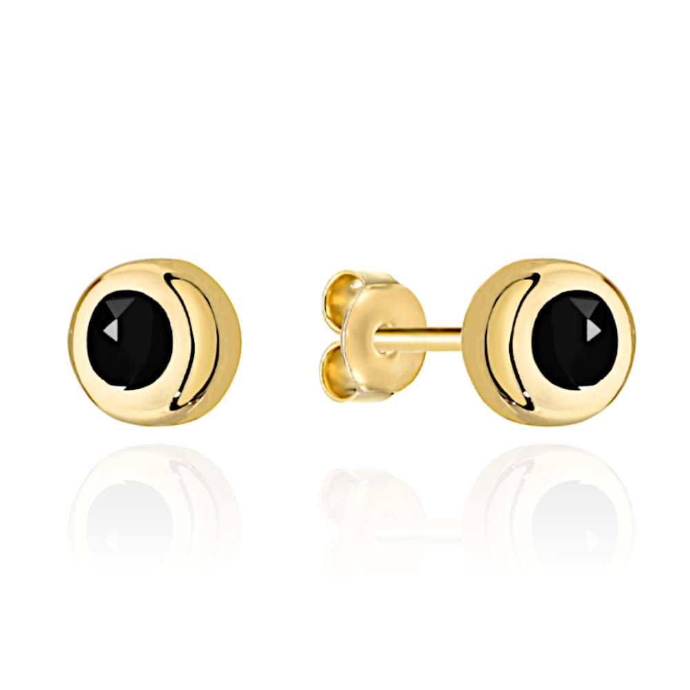 Eleganckie kolczyki z dużym czarnym kamieniem otoczonym złotem, które podkreślą subtelność i wyrafinowanie każdej stylizacji. Idealny wybór dla osób ceniących klasykę z nutą nowoczesności, gwarantujący wyjątkowy blask w każdym detalu.