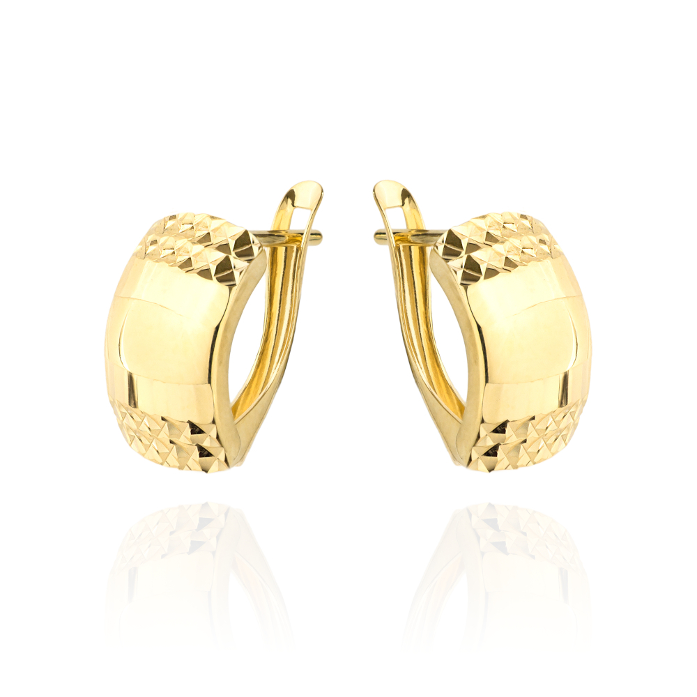 Delikatne kolczyki z złota, które subtelnie podkreślają naturalną elegancję. Dwa poprzeczne diamentowane paski dodają blasku, czyniąc je idealnym dodatkiem do każdej stylizacji.