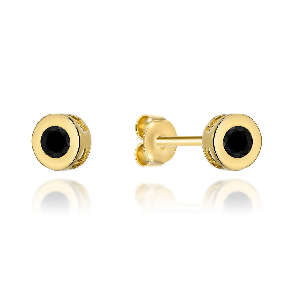 Kolczyki złote kółeczka z czarnym kamieniem