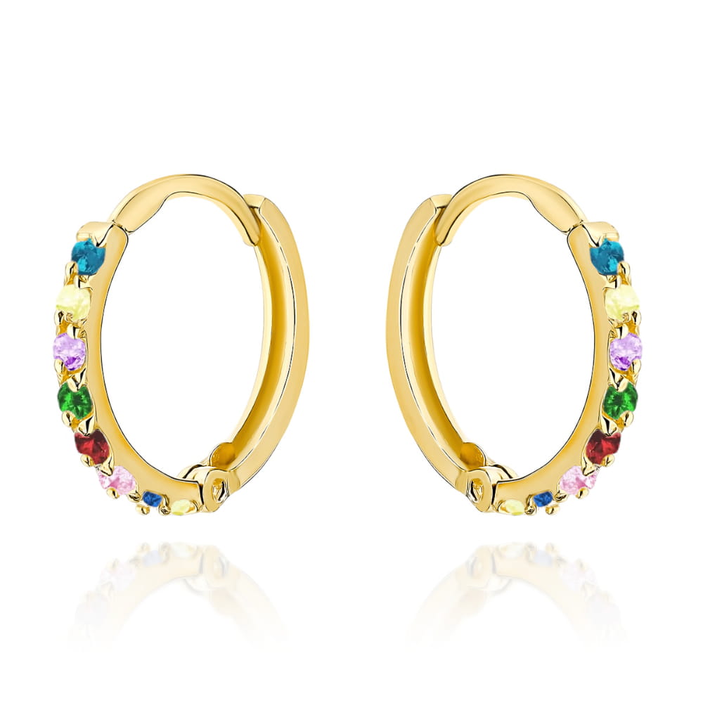Zachwycające kolczyki w złotym kółeczku, wykończone kolorowymi kamieniami, dodadzą blasku każdej stylizacji. Idealne na wieczorne wyjście lub codzienny look, podkreślą Twój elegancki gust i wyjątkowość.